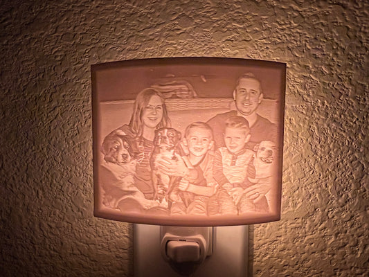 Lighted picture boxes, ornaments and night lights made from a picture that you upload.